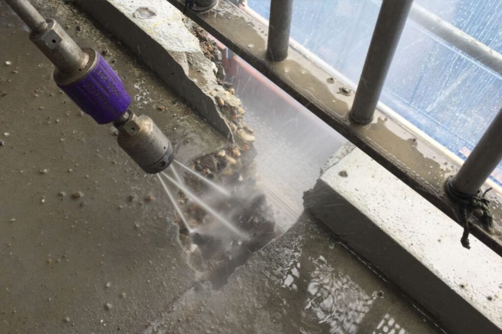 Beim Hochdruckwasserstrahlen trifft ein nur 1 bis 3 mm dünner Wasserstrahl mit einem Druck von max. 3.000 bar und einer Geschwindigkeit von bis zu 700 m/s (doppelte Schallgeschwindigkeit) auf die Betonoberfläche.